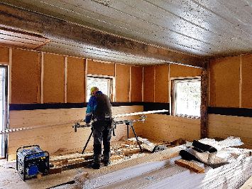 Endast organiska naturmaterial i detta hus. Som det stått i 140 år sedan 1880. Träfiberisolering i trossbotten och mellanbjälklagret, liksom det kommer bli i resten av huset.